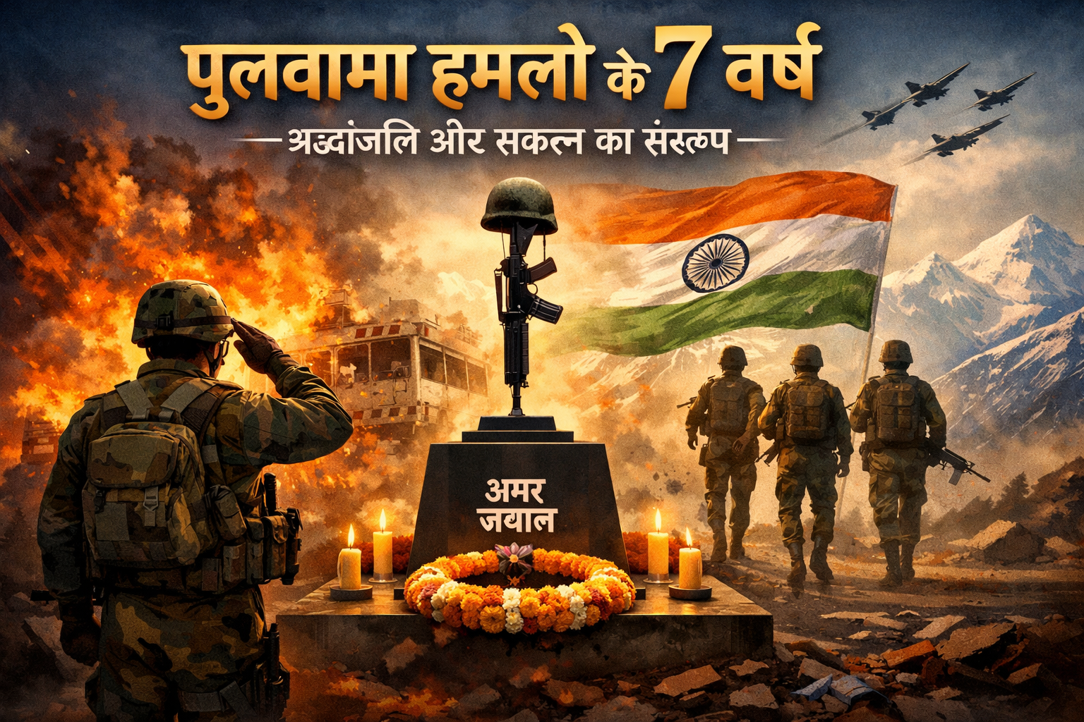 न्यूज डेस्क। 14 फ़रवरी 2019 का दिन भारत के इतिहास में एक ऐसी तारीख के रूप में दर्ज है, जिसे देश कभी भूल नहीं सकता। जम्मू–कश्मीर के पुलवामा जिले में हुए आतंकी हमले में केंद्रीय रिज़र्व पुलिस बल (CRPF) के 40 से अधिक जवान शहीद हो गए थे। आज, 14 फ़रवरी 2026 को इस दुखद घटना को पूरे सात वर्ष हो चुके हैं। इन सात वर्षों के दौरान देश ने न केवल शहीदों की याद को सम्मान दिया है, बल्कि आतंकवाद के खिलाफ अपने संकल्प को और अधिक मजबूत किया है।