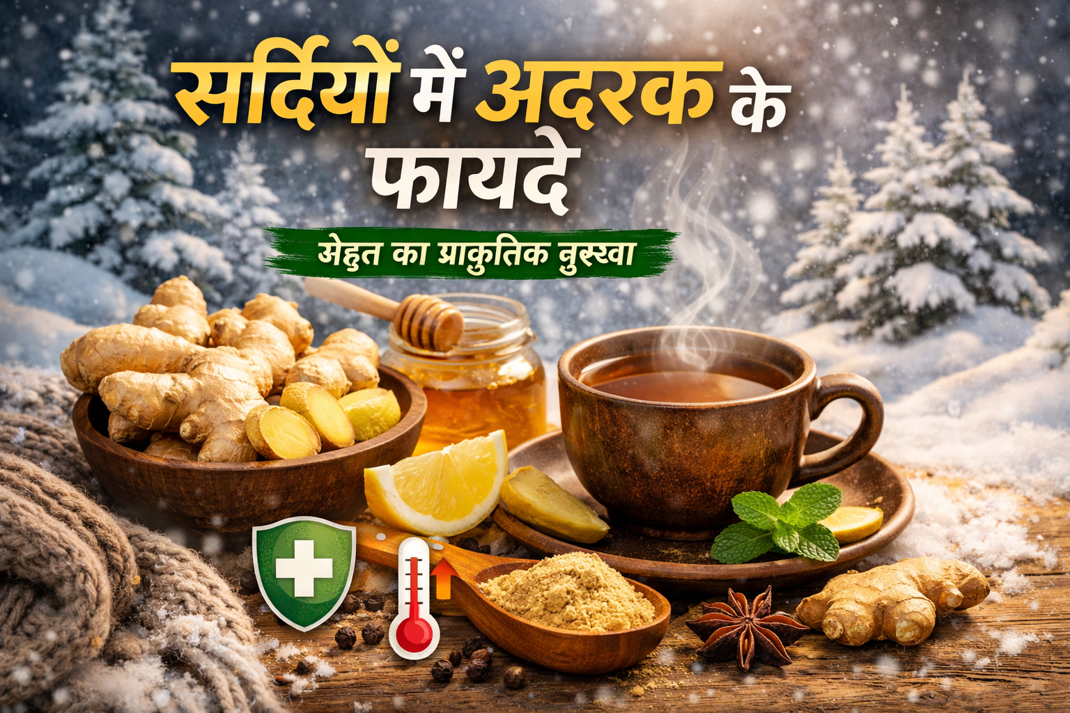 अदरक की तासीर गरम होती है। इसमें जिंजरोल, शोआगोल, एंटीऑक्सीडेंट, एंटी-इन्फ्लेमेटरी और एंटी-बैक्टीरियल गुण पाए जाते हैं। यही कारण है कि सर्दियों में इसका सेवन शरीर के लिए विशेष रूप से लाभकारी माना जाता है।